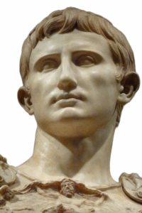 De eerste Romeinse keizer: Augustus. Zijn naam betekent ‘de verhevene’. Hij is de achterneef van Julius Caesar. Onze maand augustus is naar deze Romeinse keizer vernoemd.